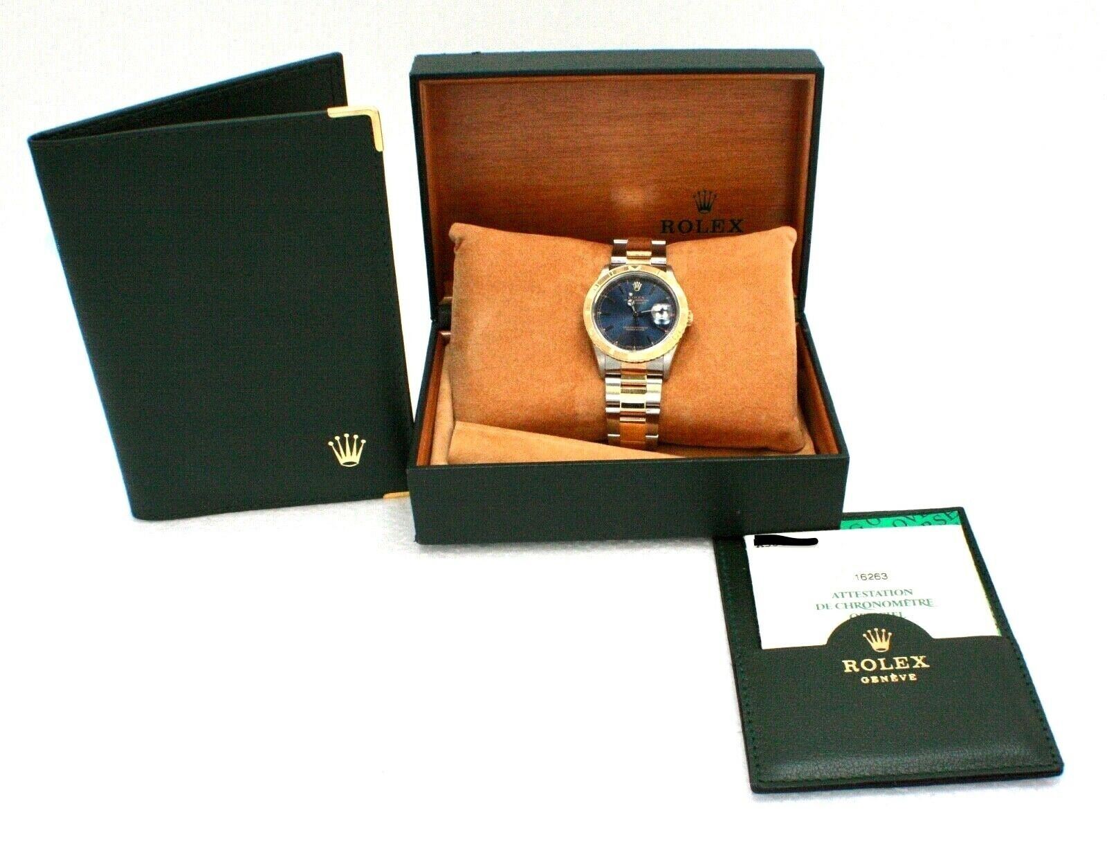 Description: ROLEX DATEJUST SUPERLATIVE CHRONOMETER GOLD AND STAINLESS ROMAN BLUE DIAL.