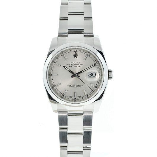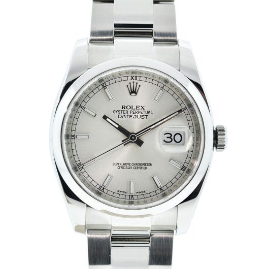 Rolex 116200 Datejust Silver Dial Smooth Bezel 36mm Stainless Steel Watch