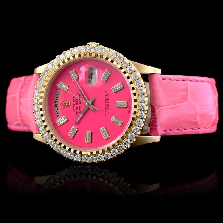 Dial: *Custom Hot Pink Baguette Diamond Dial