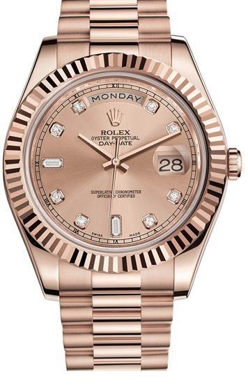 Model: 218235-CHDPR - CASE = [Material:18kt Rose Gold], [Case Diameter:41], [Bezel:Fluted 18k Rose Gold], [Case Back:Solid], [Water Resistant:100 Meters - 330 Feet], [Crystal:Sapphire],; DIAL = [Color:Champagne Diamond],; MOVEMENT = [Type:Automatic Self Winding], [Crown:Screw Down],; BAND = [Clasp:Concealed Crown], [Type:18k Rose Gold President], (Usually ships in 2 to 4 business days.)