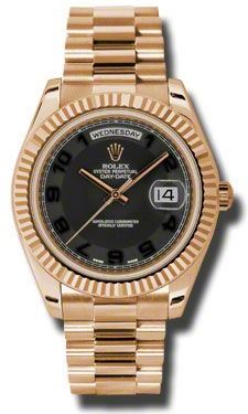 Model: 218235-BKCAPR - CASE = [Material:18kt Rose Gold], [Case Diameter:41], [Bezel:Fluted], [Case Back:Solid], [Water Resistant:100 Meters - 330 Feet], [Crystal:Sapphire],; DIAL = [Color:Black Concentric Arabic],; MOVEMENT = [Type:Automatic Self Winding], [Crown:Screw Down],; BAND = [Clasp:Concealed Crown], [Type:18kt Rose Gold President], (Usually ships in 2 to 4 business days.)