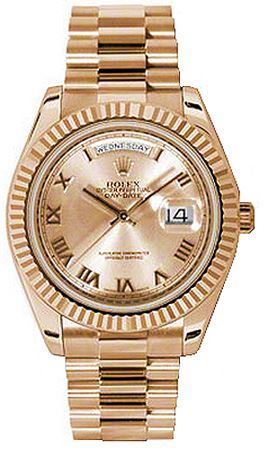 Model: 218235-CHRPR - CASE = [Material:18kt Rose Gold], [Case Diameter:41], [Bezel:Fluted], [Water Resistant:100 Meters - 330 Feet], [Crystal:Scratch Resistant Sapphire], DIAL = [Color:Champagne Roman Numeral], MOVEMENT = [Type:Automatic Self Winding], BAND = [Type:18kt Rose Gold President], (Usually ships in 2 to 4 business days.)