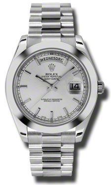 Model: 218206-SISPR - CASE = [Material:Platinum], [Case Diameter:41], [Bezel:Domed], [Case Back:Solid], [Water Resistant:100 Meters - 330 Feet], [Crystal:Scratch Resistant Sapphire], DIAL = [Color:Silver Stick], MOVEMENT = [Type:Automatic Self Winding], [Crown:Screw Down], BAND = [Clasp:Concealed Crown], [Type:Platinum], (Usually ships in 2 to 4 business days.)
