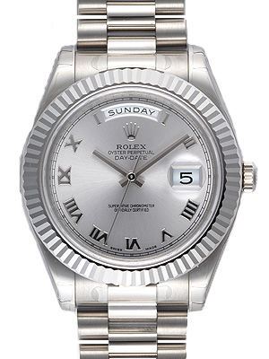 Model: 218239-SIRPR - CASE = [Material:18kt White Gold], [Case Diameter:41], [Bezel:Fluted], [Water Resistant:100 Meters - 330 Feet], [Crystal:Sapphire], DIAL = [Color:Silver Roman Numeral], MOVEMENT = [Type:Automatic Self Winding], BAND = [Type:18k White Gold President], (Usually ships in 2 to 4 business days.)