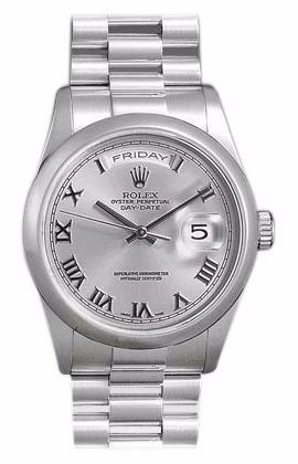 Model: 118209-SIRO - CASE = [Material:18kt White Gold], [Case Diameter:36], [Bezel:Fixed Domed], [Water Resistant:100 Meters - 330 Feet], [Crystal:Scratch Resistant Sapphire],; DIAL = [Color:Silver Roman Numeral],; MOVEMENT = [Type:Automatic Self Winding], [Crown:Screw Down],; BAND = [Clasp:Deployant], [Type:18kt Yellow Gold Oyster], (Usually ships in 1 to 2 weeks.)