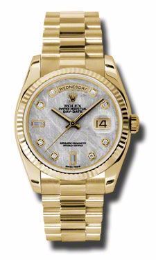 Model: 118238-MEDPR - CASE = [Material:18kt Yellow Gold], [Case Diameter:36], [Bezel:Fluted], [Water Resistant:100 Meters - 330 Feet], [Crystal:Scratch Resistant Sapphire],; DIAL = [Color:White Diamond],; MOVEMENT = [Type:Automatic Self Winding],; BAND = [Clasp:Deployant], [Type:18kt Yellow Gold President], (Usually ships in 1 to 2 weeks.)