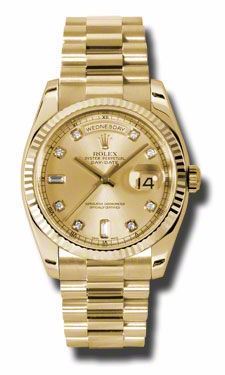 Model: 118238-CHDPR - CASE = [Material:18kt Yellow Gold], [Case Diameter:36], [Bezel:Fluted 18kt Yellow Gold], [Case Back:Solid], [Water Resistant:100 Meters - 330 Feet], [Crystal:Scratch Resistant Sapphire],; DIAL = [Color:Champagne Diamond],; MOVEMENT = [Type:Automatic Self Winding], [Crown:Screw Down],; BAND = [Clasp:Concealed Crown], [Type:18kt Yellow Gold], (Usually ships in 2 to 4 business days.)