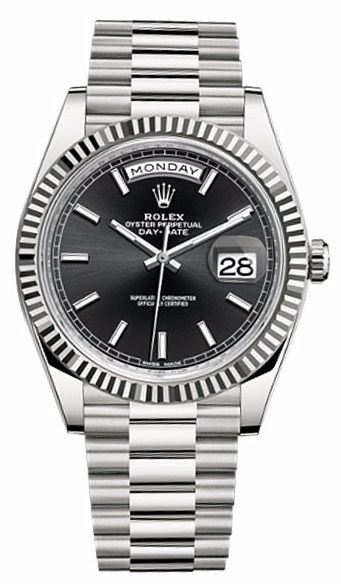 Model: 228239-BKSPR - CASE = [Material:Stainless Steel], [Case Diameter:40], [Water Resistant:100 Meters - 330 Feet], [Crystal:Scratch Resistant Sapphire],; DIAL = [Color:Black with Silver Hands and Index Hour Markers],; MOVEMENT = [Type:Automatic Self Winding], [Crown:Screw Down],; BAND = [Clasp:Folding], [Type:Stainless Steel], (Usually ships in 1 to 2 weeks.)