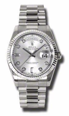 Model: 118239-SIDPR - CASE = [Material:18kt White Gold], [Case Diameter:36], [Bezel:Fluted], [Case Back:Solid], [Water Resistant:100 Meters - 330 Feet], [Crystal:Sapphire],; DIAL = [Color:Silver Diamond],; MOVEMENT = [Type:Automatic Self Winding], [Crown:Screw Down],; BAND = [Clasp:Concealed Crown], [Type:18kt White Gold], (Usually ships in 1 to 2 weeks.)