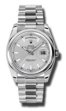Model: 118206-SISPR - CASE = [Material:Platinum], [Case Diameter:36], [Bezel:Domed], [Case Back:Solid], [Water Resistant:100 Meters - 330 Feet], [Crystal:Sapphire],; DIAL = [Color:Silver Stick],; MOVEMENT = [Type:Automatic Self Winding], [Crown:Screw Down],; BAND = [Clasp:Concealed Crown], [Type:Platinum], (Usually ships in 1 to 2 weeks.)