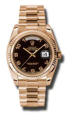 Model: 118235-BKAPR - CASE = [Material:18kt Rose Gold], [Case Diameter:36], [Bezel:Fluted], [Case Back:Solid], [Water Resistant:100 Meters - 330 Feet], [Crystal:Sapphire], DIAL = [Color:Black Arabic], MOVEMENT = [Type:Automatic Self Winding], [Crown:Screw Down], BAND = [Clasp:Concealed Crown], [Type:18kt Rose Gold President], (Usually ships in 1 to 2 weeks.)