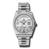 Model: 118346-MOPDPR - CASE = [Material:Platinum], [Case Diameter:36], [Bezel:Set With 52 Diamonds], [Case Back:Solid], [Water Resistant:100 Meters - 330 Feet], [Crystal:Sapphire], DIAL = [Color:Mother of Pearl Diamond], MOVEMENT = [Type:Automatic Self Winding], [Crown:Screw Down], BAND = [Clasp:Concealed Crown], [Type:Platinum], (Usually ships in 1 to 2 weeks.)