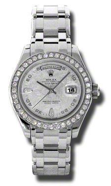 Model: 18946-MEDP - CASE = [Material:Platinum], [Case Diameter:39], [Bezel:Fixed bezel set with 40 diamonds], [Case Back:Solid], [Water Resistant:100 Meters - 330 Feet], [Crystal:Scratch Resistant Sapphire], DIAL = [Color:White Diamond], MOVEMENT = [Type:Automatic Self Winding], [Crown:Screw Down], BAND = [Clasp:Concealed Crown], [Type:Platinum Pearlmaster], (Usually ships in 1 to 2 weeks.)
