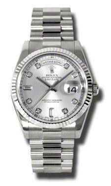 Model: 118239-SIDPR - CASE = [Material:18kt White Gold], [Case Diameter:36], [Bezel:Fluted], [Case Back:Solid], [Water Resistant:100 Meters - 330 Feet], [Crystal:Sapphire], DIAL = [Color:Silver Diamond], MOVEMENT = [Type:Automatic Self Winding], [Crown:Screw Down], BAND = [Clasp:Concealed Crown], [Type:18kt White Gold], (Usually ships in 1 to 2 weeks.)