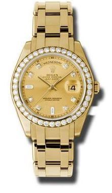 Model: 18948-CHDO - CASE = [Material:18kt Yellow Gold], [Case Diameter:20], [Bezel:Fixed, Diamond], [Water Resistant:100 Meters - 330 Feet], [Crystal:Scratch Resistant Sapphire], DIAL = [Color:Champagne Diamond], MOVEMENT = [Type:Automatic Self Winding], BAND = [Type:18kt Yellow Gold Oyster], (Usually ships in 1 to 2 weeks.)