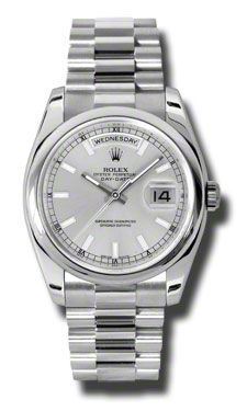 Model: 118206-SISPR - CASE = [Material:Platinum], [Case Diameter:36], [Bezel:Domed], [Case Back:Solid], [Water Resistant:100 Meters - 330 Feet], [Crystal:Sapphire], DIAL = [Color:Silver Stick], MOVEMENT = [Type:Automatic Self Winding], [Crown:Screw Down], BAND = [Clasp:Concealed Crown], [Type:Platinum], (Usually ships in 1 to 2 weeks.)