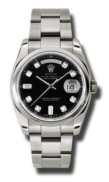 Model: 118209-BKDO - CASE = [Material:18kt White Gold], [Case Diameter:36], [Bezel:Domed], [Case Back:Solid], [Water Resistant:100 Meters - 330 Feet], [Crystal:Scratch Resistant Sapphire], DIAL = [Color:Black Diamond], MOVEMENT = [Type:Automatic Self Winding], [Crown:Screw Down], BAND = [Clasp:Oysterlock Clasp], [Type:18kt Yellow Gold Oyster], (Usually ships in 1 to 2 weeks.)