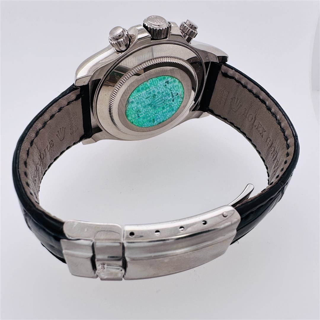 One Rolex Daytona 18k White Gold MoP Dial with Leather Strap Wristwatch (Very Rare). This watch is in excellent condition. The watch photographed is the actual watch.