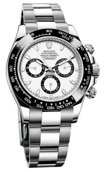 Model: 116500LN-WH - CASE = [Material:Polished Stainless Steel], [Case Diameter:40], [Bezel:Ceramic], [Case Back:Solid], [Water Resistant:100 Meters - 330 Feet], [Crystal:Scratch Resistant Sapphire], DIAL = [Color:White with 18kt White Gold Hour Markers], MOVEMENT = [Type:Automatic], [Crown:Screw Down], BAND = [Clasp:Folding], [Type:Stainless Steel], (Usually ships in 1 to 2 weeks.)