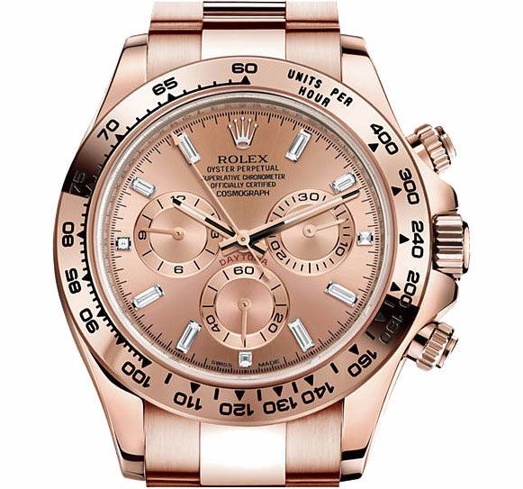Model: 116505-PIDO - CASE = [Material:18kt Rose Gold], [Case Diameter:40], [Water Resistant:100 Meters - 330 Feet], [Crystal:Scratch Resistant Sapphire],; DIAL = [Color:Pink with Rose Gold Hands and Diamond Hour Markers],; MOVEMENT = [Type:Automatic Self Winding], [Crown:Screw Down],; BAND = [Clasp:Folding], [Type:18kt Rose Gold], (Usually ships in 1 to 2 weeks.)