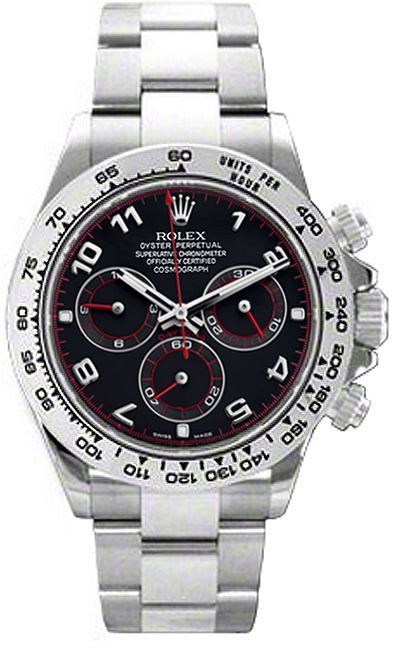 Model: 116509-BKAO - CASE = [Material:18kt White Gold], [Case Diameter:40], [Water Resistant:100 Meters - 330 Feet], [Crystal:Scratch Resistant Sapphire], DIAL = [Color:Black Arabic], MOVEMENT = [Type:Automatic Self Winding], BAND = [Clasp:Deployant Clasp], [Type:18kt White Gold], (Usually ships in 1 to 2 weeks.)
