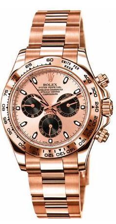 Model: 116505-RSCHSO - CASE = [Material:18kt Rose Gold], [Case Diameter:40], [Bezel:Tachymeter Engraved], [Water Resistant:100 Meters - 330 Feet], [Crystal:Scratch Resistant Sapphire], DIAL = [Color:Rose Gold Stick], MOVEMENT = [Type:Automatic Self Winding Chronograph], [Crown:Screw Down], BAND = [Clasp:Deployant Clasp], [Type:18k Rose Gold], (Usually ships in 2 to 4 business days.)