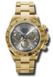 Model: 116528-GRYSO - CASE = [Material:18kt Yellow Gold], [Case Diameter:40], [Bezel:Engraved Bezel], [Water Resistant:100 Meters - 330 Feet], [Crystal:Sapphire], DIAL = [Color:Grey Stick], MOVEMENT = [Type:Automatic Self Winding Chronograph], [Crown:Screw Down], BAND = [Clasp:Oysterlock Clasp], [Type:18kt Yellow Gold Oyster], (Usually ships in 1 to 2 weeks.)