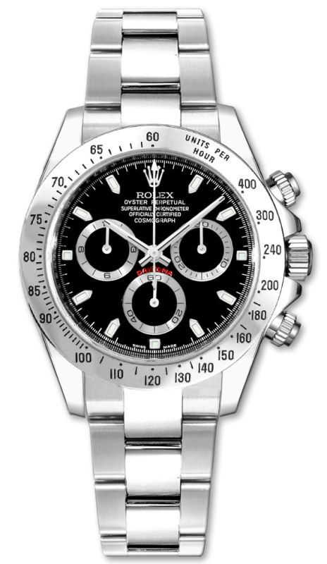 Model: 116520-BKSO - CASE = [Material:Stainless Steel], [Case Diameter:40], [Bezel:Engraved Bezel], [Case Back:Solid], [Water Resistant:100 Meters - 330 Feet], [Crystal:Scratch Resistant Sapphire], DIAL = [Color:Black Stick], MOVEMENT = [Type:Automatic Self Winding], [Crown:Screw Down], BAND = [Clasp:Oysterlock Clasp], [Type:Stainless Steel], (Usually ships in 1 to 2 weeks.)