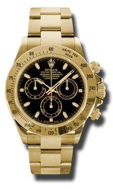 Model: 116528-BKSO - CASE = [Material:18kt Yellow Gold], [Case Diameter:40], [Bezel:Engraved Bezel], [Water Resistant:100 Meters - 330 Feet], [Crystal:Sapphire], DIAL = [Color:Black Stick], MOVEMENT = [Type:Automatic Self Winding Chronograph], [Crown:Screw Down], BAND = [Clasp:Oysterlock Clasp], [Type:18k Yellow Gold Oyster], (Usually ships in 1 to 2 weeks.)
