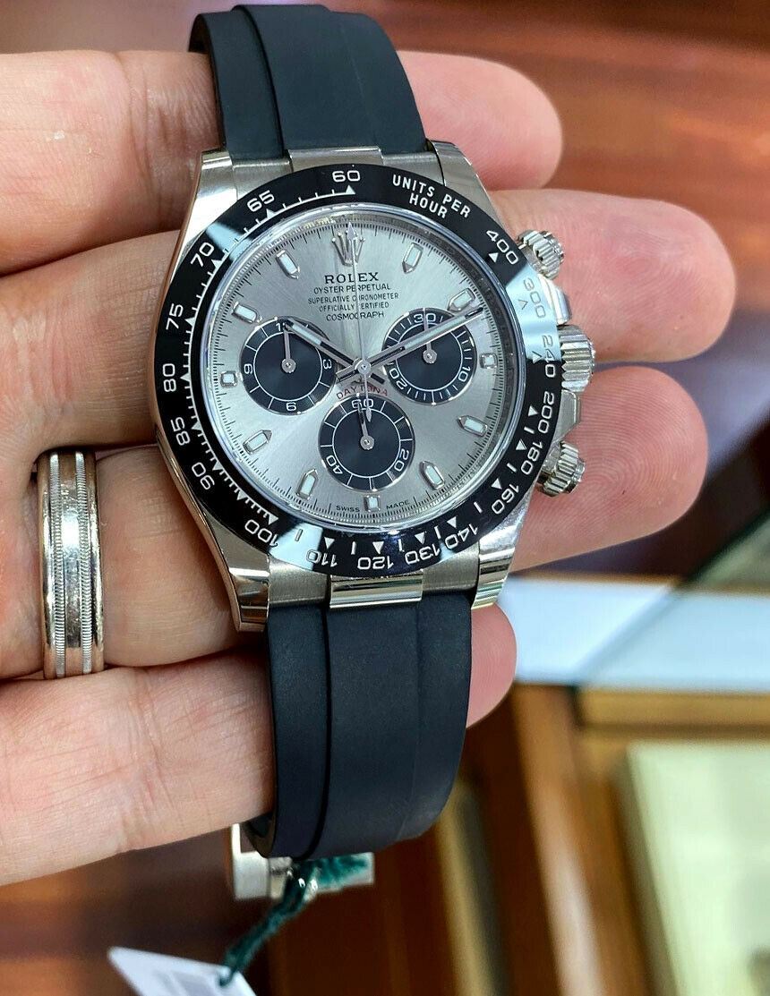 Style: Rolex Daytona 18K White Gold 116519LN OysterFlex Cosmograph