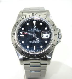 Rolex Explorer II Stainless Steel JustDate WristWatch. The total watch's weight is 120.4 grams. The size of watch head: 29 x 38 mm and 8 mm thick. The length of the watch is 7.5". Swiss Made. Water Resistant