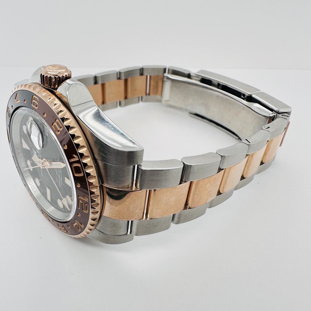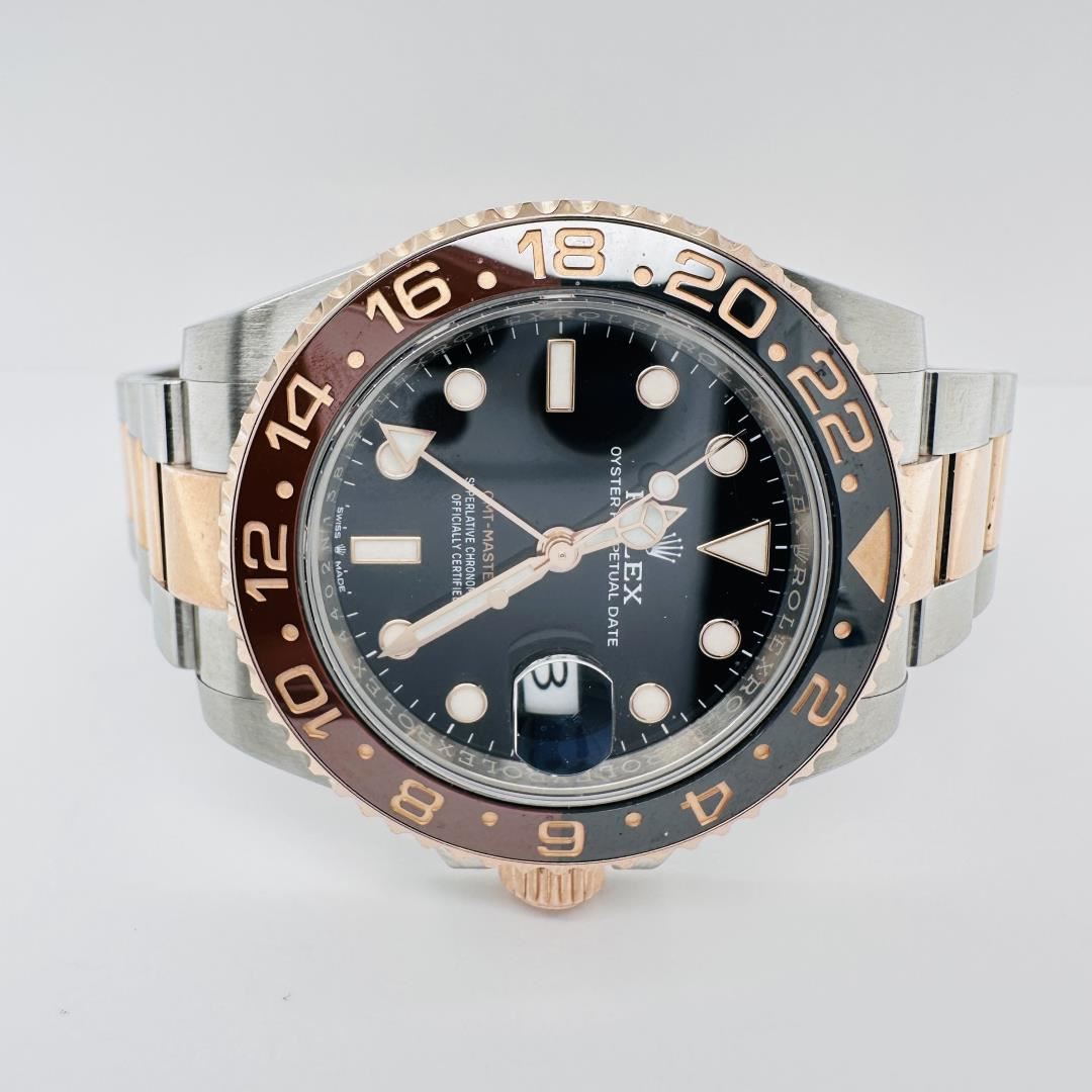 This Rolex GMT-Master II 'Root Beer' is crafted in stainless steel and 18k Everose gold, paired with the Oyster bracelet. It features a black dial with luminous hour markers and the signature two-tone brown and black Cerachrom bezel for dual time zone functionality. A modern classic, this sought-after model combines sport utility with luxurious design, making it a standout in any Rolex collection.