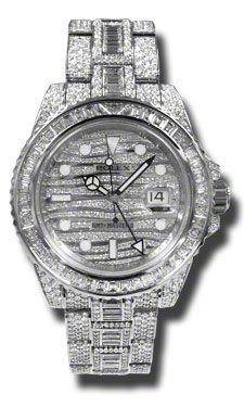 Model: 116769-DIDOO - CASE = [Material:18kt white gold set with diamonds], [Case Diameter:40], [Bezel:18kt white gold bracelet set with diamonds], [Case Back:Solid], [Water Resistant:100 Meters - 330 Feet], [Crystal:Scratch Resistant Sapphire], DIAL = [Color:Diamond Wave Dot], MOVEMENT = [Type:Automatic Self Winding], [Crown:Screw Down], BAND = [Clasp:Oysterlock Clasp], [Type:18kt white gold bracelet set with diamonds], (Usually ships in 1 to 2 weeks.)