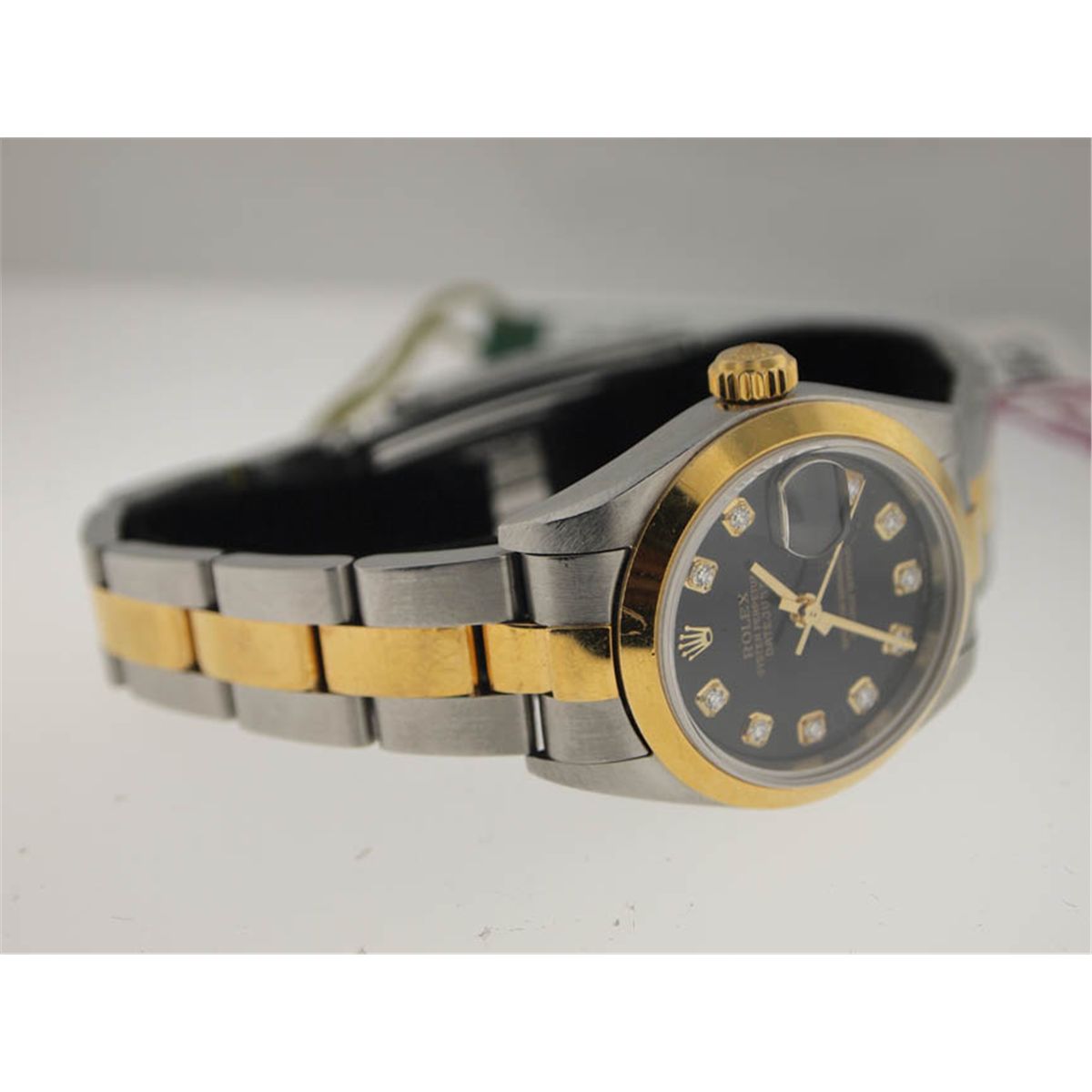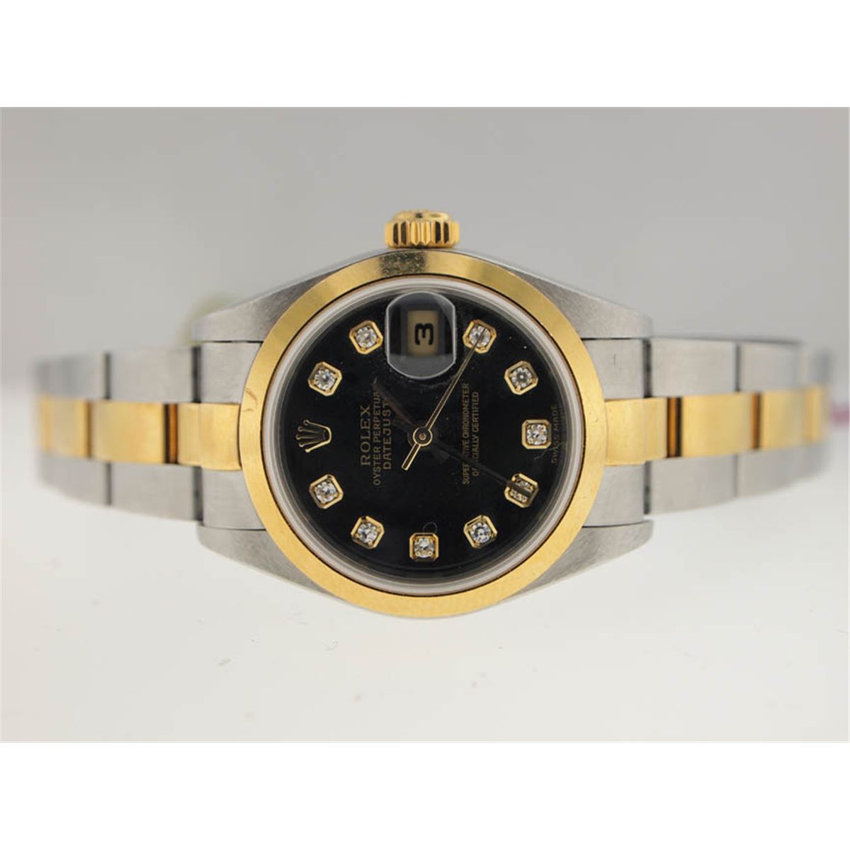 Rolex Ladies 18k and SS Datejust. 2004. PAPERS. Rolex, Ladies, 18k Gold, Stainless Steel, Oyster Perpetual, Datejust, Year 2004, Oyster Bracelet,Comes with Papers and Tags, Custom After Market Diamond Dial, Black Dial, Sapphire Crystal, Quickset Movement, Automatic Movement, Deployment Buckle, Smooth Bezel, Swiss Made, Beautiful Condition, Pre-Owned.