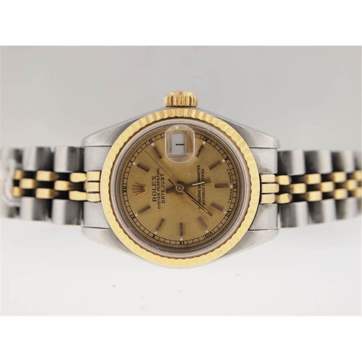 Rolex Ladies 18k and SS Datejust. Quickset. Rolex, Ladies, 18k Gold, Stainless Steel, Oyster Perpetual, Datejust, Automatic Movement, Quickset Movement, Sapphire Crystal, Hash Dial, Jubilee Bracelet, Deployment Buckle, Swiss Made, Pre-Owned.