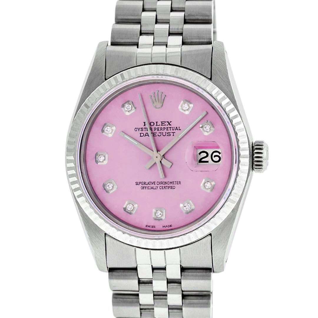 One Ladies Two Tone Rolex Datejust Polished, Serviced & Electronically Tested, Yellow Gold & Stainless Steel Case: 26mm, Yellow Gold Crown, Custom Bezel: New 18K Yellow Gold Sapphire Beadset Diamond Bezel, Diamond Count: 28 Diamonds + 4 Sapphires, Total Weight .70 Carat, Clarity: SI-VS, Color: G to H. Custom Crystal: New Synthetic Sapphire Cyclops Lens. Custom Hands: New Luminescent Hands. Movement: Automatic Winding Movement. Custom Dial: Pink Mother Of Pearl With Sapphire String Diamond Hour Markers. Stone Count: 10 Sapphires + 33 Diamonds In Dial, Clarity: SI-VS, Color: G to H. Date Window: 3 O'Clock Position Date Display, Model: Datejust. Condition: G-6 Extra Fine. Bracelet: Two Tone Yellow Gold & Stainless Steel Jubilee. Bright Polish. 6.0 Inch Length, Adjustable. Standard Clasp, With Rolex Logo. This Watch Has Been Serviced Time Tested And Is In Excellent Condition It Is Free Of All Scratches And Dents.