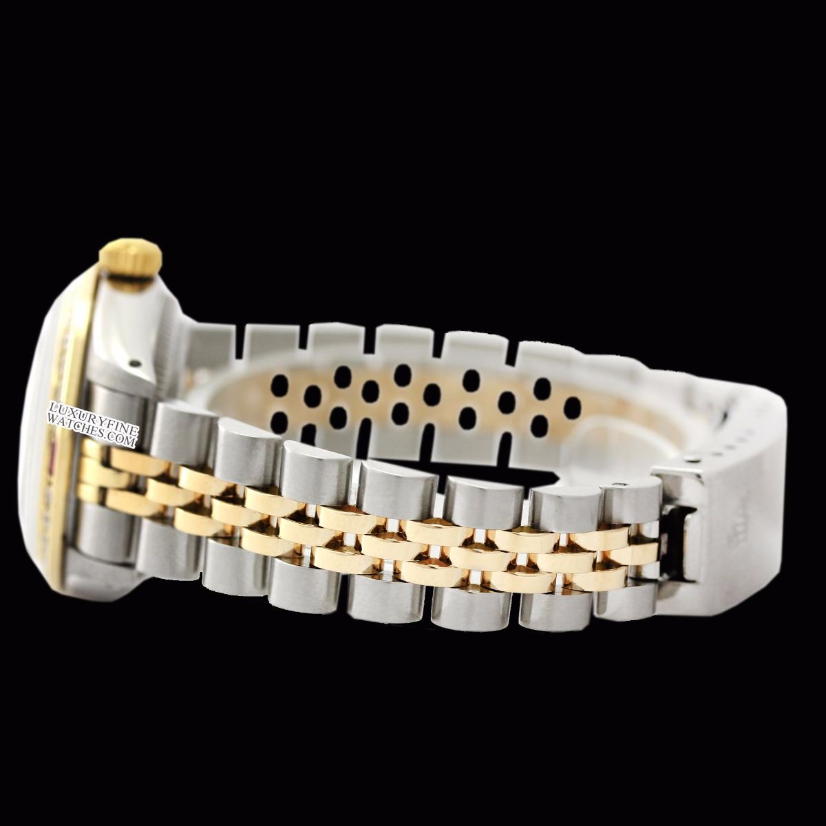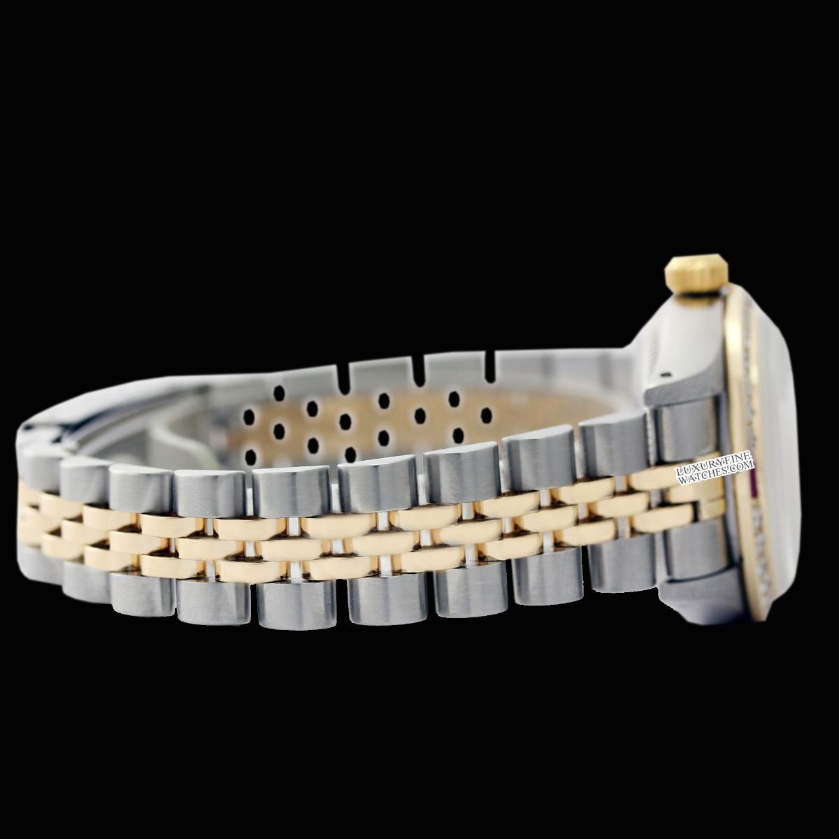 Pre-owned Rolex Ladies Two Tone 14K Gold/ Stainless Steel, Diam/Ruby Dial & Diam/Ruby Bezel, Sapphire CrystalThis watch is in Excellent Condition.