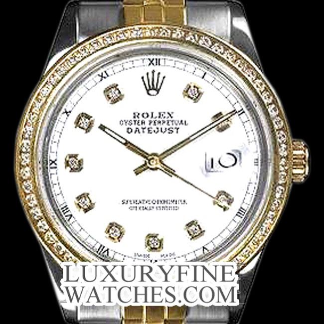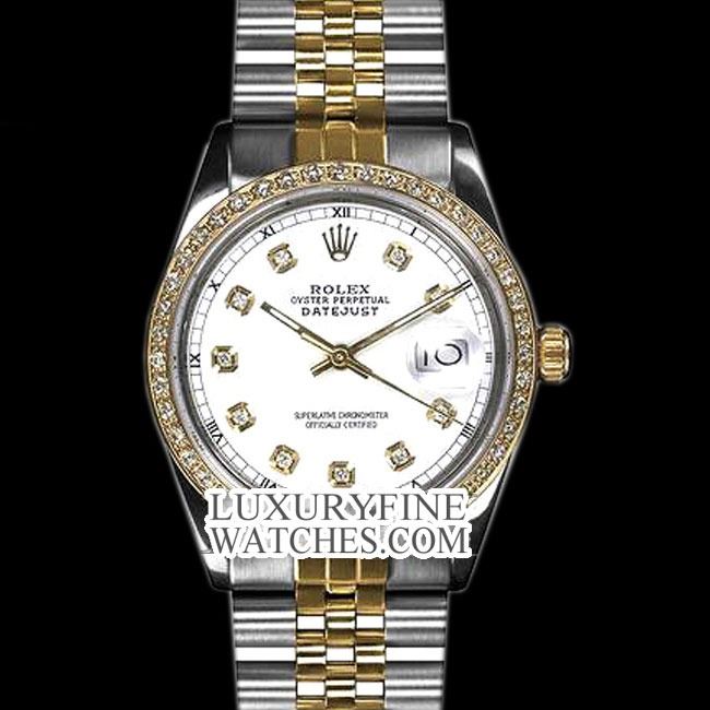 WATCH DETAILS: ITEM: WatchBRAND: RolexTYPE: Two ToneFEATURE: MODEL: DateJustMADE: Swiss MadeGENDER: LadiesCONDITION: Pre-OwnedFUNCTION: DateDIAL COLOR: whiteHOUR MARKERS: 10 Round DiamondBEZEL TYPE: Diamond BezelBEZEL STONE: Diamond .80 CTW G-VVS1 BEZEL MATERIAL: 18K GoldBRACELET TYPE: Jubilee BRACELET MATERIAL: 14K Yellow Gold & Stainless SteelCLASP TYPE: Folding ClaspCLASP MATERIAL: Stainless SteelCASE STONE: CASE SIZE: 36mmCRYSTAL: Scratch Resistance Sapphire CrystalMOVEMENT: Automatic (Self Winding)CALIBER: 2035CROWN TYPE: Screw Down CrownWATER RESISTANCE: Waterproof to 10 ATM/100 meters/330 feetMODEL #: 6917SKU #: ALTJNS141We Buy/Sell/Trade Valuable watches, Please call usNote: Presentational generic box included. This watch was professionally inspected and serviced prior to auction. We are not affiliated with Rolex USA, Inc.