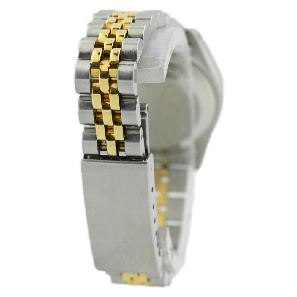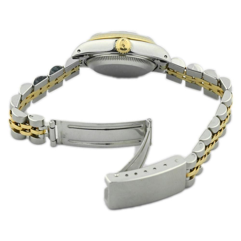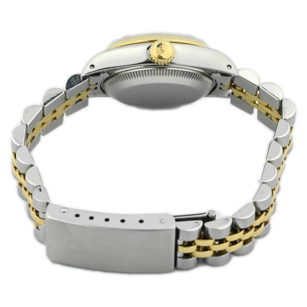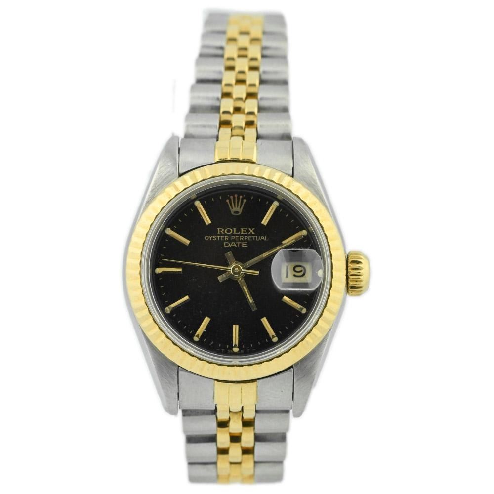 Model: Date 26. Reference #: 69173. Case: 18K Yellow Gold & Steel. Case Size: 26mm. Bracelet: Two-Tone Jubilee Bracelet. Dial: Black Dial w/ Stick Hour Markers. Bezel: Fluted Gold Bezel. Date Window: 3 O'clock Position w/ Cyclops lens. Movement: Automatic Winding Movement . Water Resistant: Yes 100 Meters/330 Feet. Crystal: Scratch Resistant Sapphire Crystal . Condition: Pre-Owned. Box Included. CIRCA: 1983. All Pre-Owned watches are guaranteed to be 100% genuine. Your watch will come with a 2-year limited warranty, original box, and appraisal.