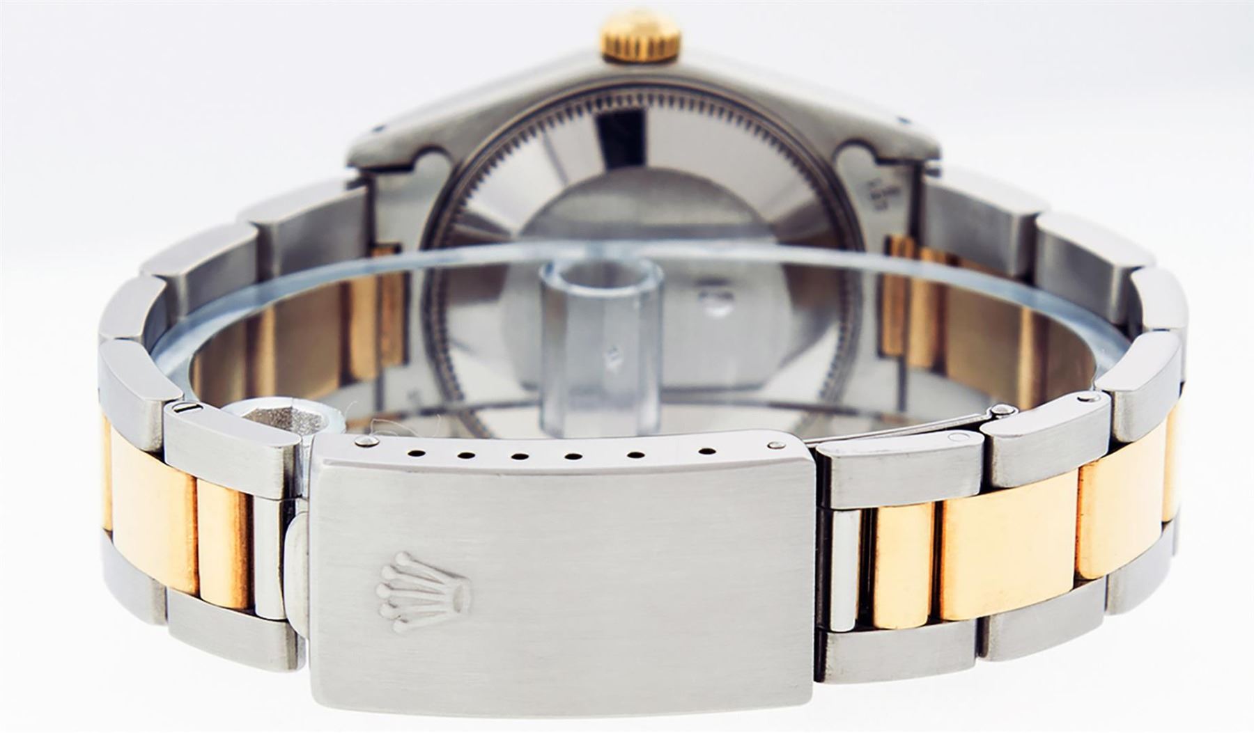 One Women's Midsize 18K Yellow Gold And Stainless Steel Rolex Datejust Polished, Serviced & Electronically Tested, Rolex Stainless Steel Case 31mm, Rolex Yellow Gold Crown, Rolex Bezel: 18K Yellow Gold Fluted Bezel. Crystal: Sapphire With Magnified Date Window. Hands: Luminescent Hands. Rolex Movement: Automatic Winding Movement Caliber 2135. Rolex Dial: Champagne Index Dial With Dash Track And Lumi Dots, Date Window: 3 O'Clock Position Date Display, Quickset, Model: Midsize Quickset Datejust. Condition: G-6 Extra Fine. Rolex Bracelet: 18K Yellow Gold And Stainless Steel Oyster Band. Bright Polish. 6.0 Inch Length, Adjustable. Standard Clasp, With Rolex Logo. This Pre Owned Watch Has Been Serviced Time Tested And Is In Excellent Condition It Is Free Of All Scratches And Dents.
