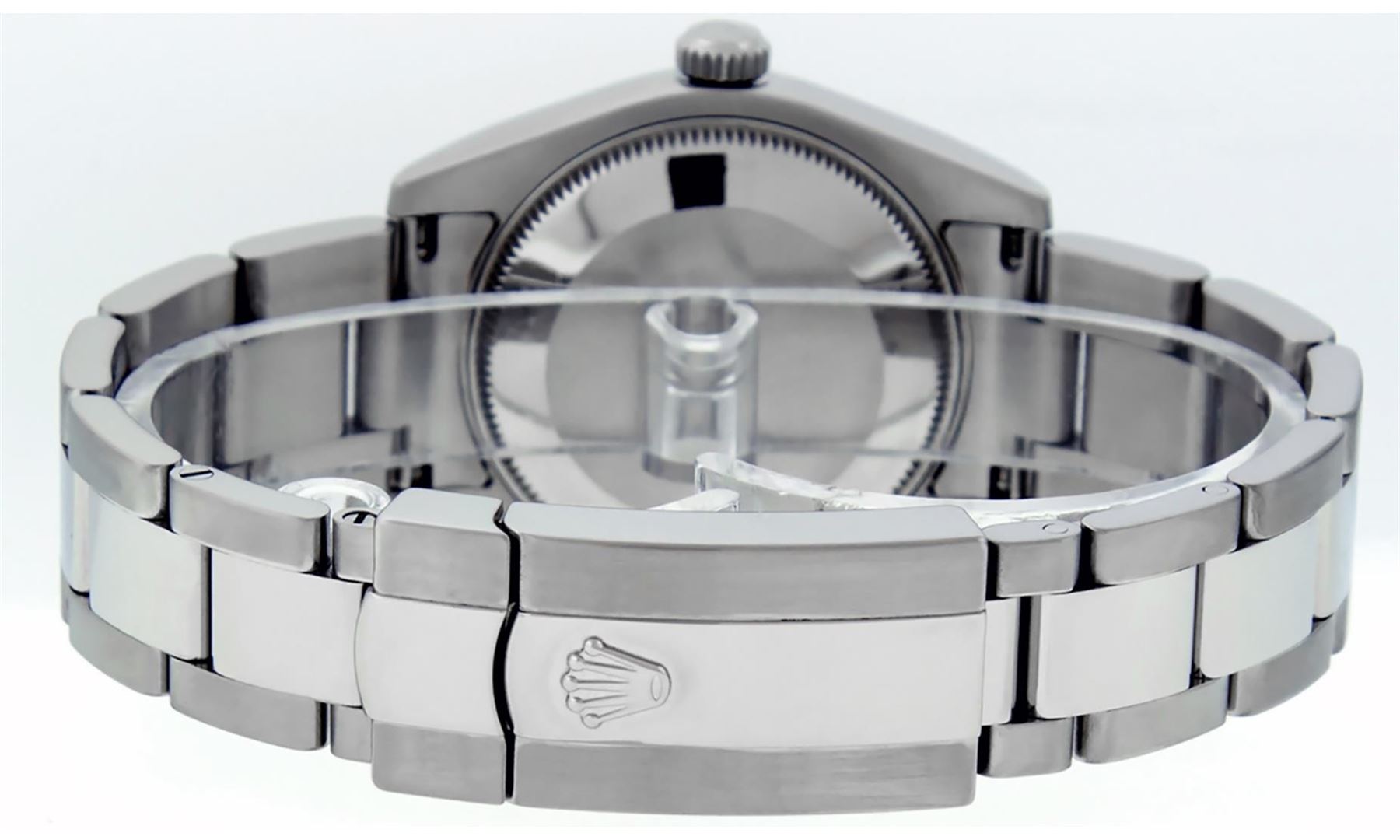 One Womens Midsize Stainless Steel Rolex Datejust Polished, Serviced & Electronically Tested, Rolex Stainless Steel Case Case: 31mm, Rolex Stainless Steel Crown, Rolex Bezel: 18K White Gold Fluted Bezel, Crystal: Sapphire With Cyclops Lens. Hands: White Hands. Rolex Movement: Automatic Winding Movement Caliber 2235. Rolex Dial: Cream Jubilee Dial With Arabic Hour Markers, Date Window: 3 O'Clock Position Date Display, Quickset, Model: Midsize Datejust. Condition: G-6 Extra Fine. Rolex Bracelet: Stainless Steel Oyster Band. Bright Polish. 6.0 Inch Length, Adjustable. Standard Clasp, With Rolex Logo. This Pre Owned Watch Has Been Serviced Time Tested And Is In Excellent Condition It Is Free Of All Scratches And Dents.