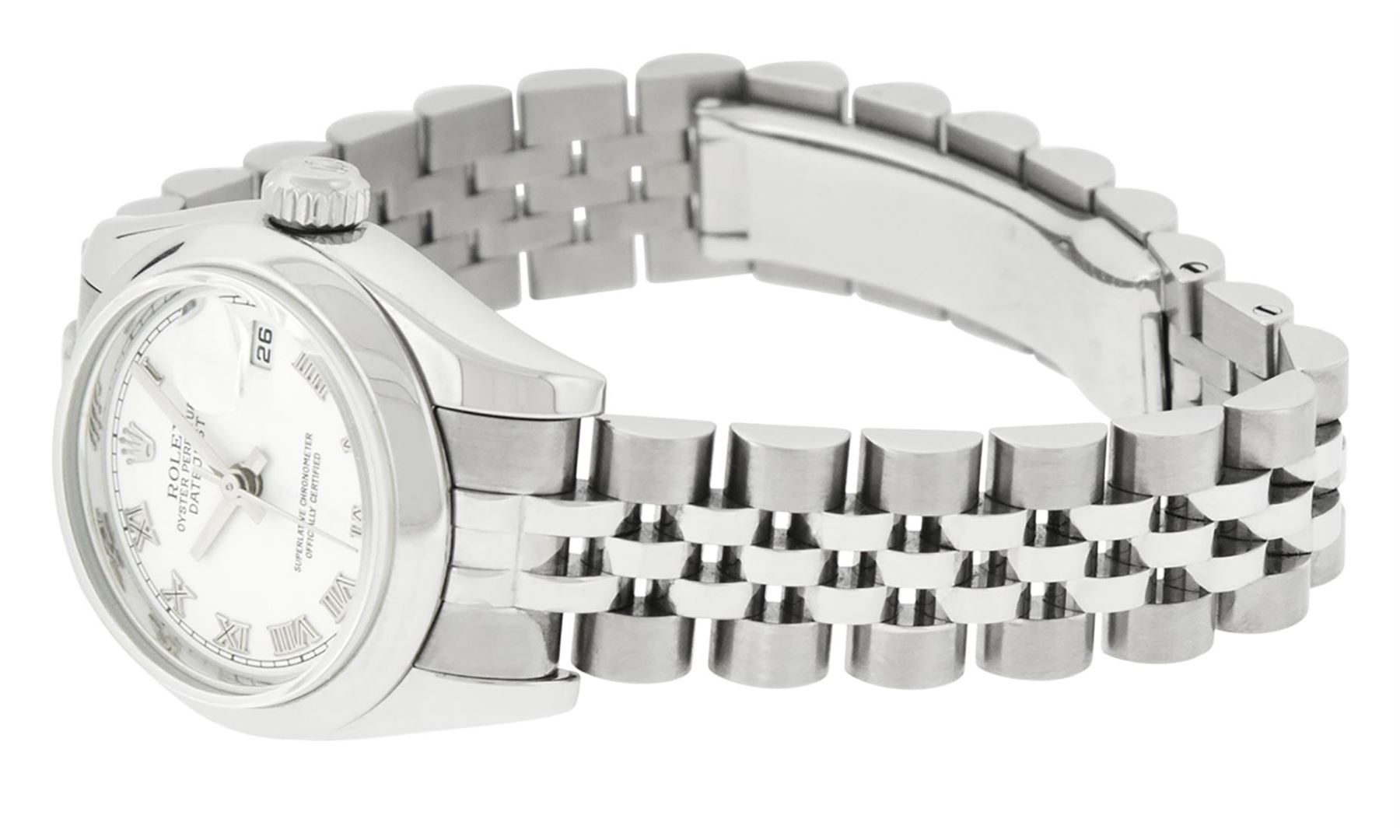 Rolex Ladies New Style Sapphire Quickset White Roman Smooth Bezel Wristwatch 26M