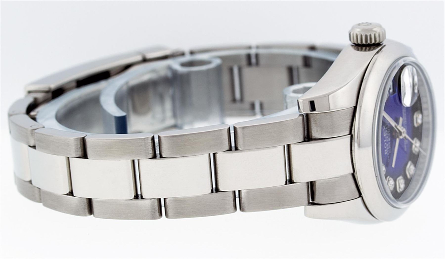 One Ladies Pre Owned Quickset Stainless Steel Rolex Datejust Polished Bright with Satin Finish, Serviced & Electronically Tested, Rolex Stainless Steel Case: 26mm, Rolex Stainless Steel Crown, Rolex Bezel: Stainless Steel Smooth Bezel. Rolex Crystal: Scra
