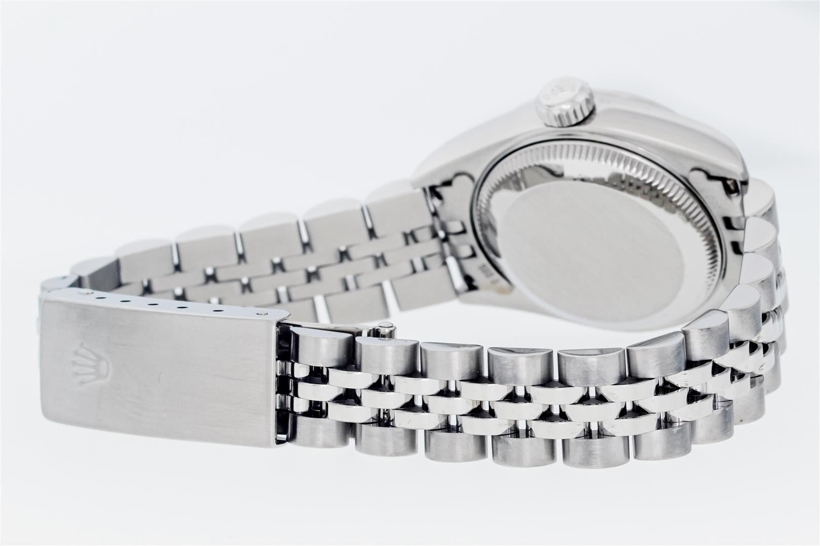 One Quickset Pre Owned Ladies Stainless Steel Rolex Date Polished Bright with Satin Finish, Serviced & Electronically Tested, Rolex Stainless Steel Case: 26mm, Rolex Stainless Steel Crown, Rolex Bezel: Stainless Steel Engine Turn Bezel, Crystal: Sapphire With Date Window. Hands: Luminescent Hands. Rolex Movement: Automatic Winding Movement 2235. Rolex Dial: White Arabic With Dash Track, Date Window: 3 O'Clock Position Date Display, Model: Quickset 2235 Datejust. Condition: G-6 Extra Fine. Rolex Bracelet: Stainless Steel Jubilee Band. Bright Polish & Satin Finish. 6.0 Inch Length, Adjustable. Standard Clasp, With Rolex Logo. This Watch Has Been Serviced Time Tested And Is In Excellent Condition It Is Free Of All Scratches And Dents.
