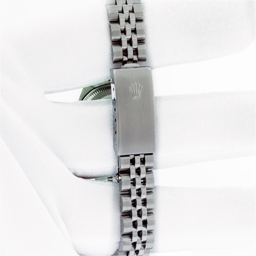One Ladies Pre Owned Stainless Steel Quickset Rolex Datejust Polished Bright with Satin Finish, Serviced & Electronically Tested, Stainless Steel Case: 26mm, Stainless Steel Crown, Custom Bezel: New 18K White Gold Pyramid Diamond Bezel, Diamond Count: 24 Diamonds On Bezel. Total Weight .50 Carat, Clarity: SI-VS, Color: G to H. Custom Crystal: New Sapphire With Magnified Date Window. Custom Hands: New Luminescent Hands. Rolex Movement: Automatic Winding Movement. Rolex Dial: White Roman Dial. Date Window: 3 O'Clock Position Date Display, Model: Datejust. Condition: G-6 Extra Fine. Rolex Bracelet: Stainless Steel Jubilee Band With Rolex Crown On Buckle. Bright Polish & Satin Finish. Band Length: 6.0 Inch Length, Adjustable. Standard Clasp, With Rolex Logo. This Watch Has Been Serviced Time Tested And Is In Excellent Condition It Is Free Of All Scratches And Dents. This Watch Comes With A Rolex Box, Booklet And Wallet.