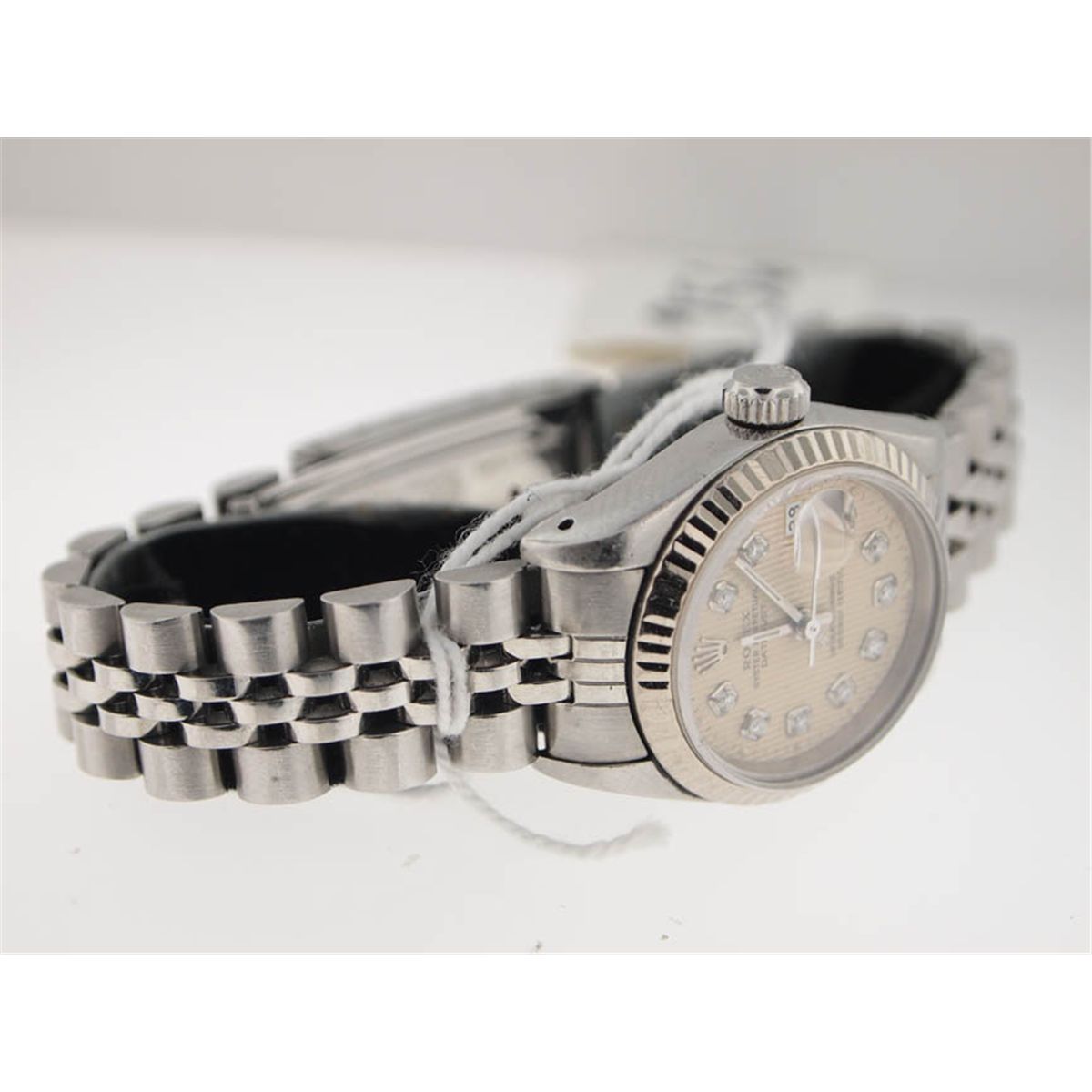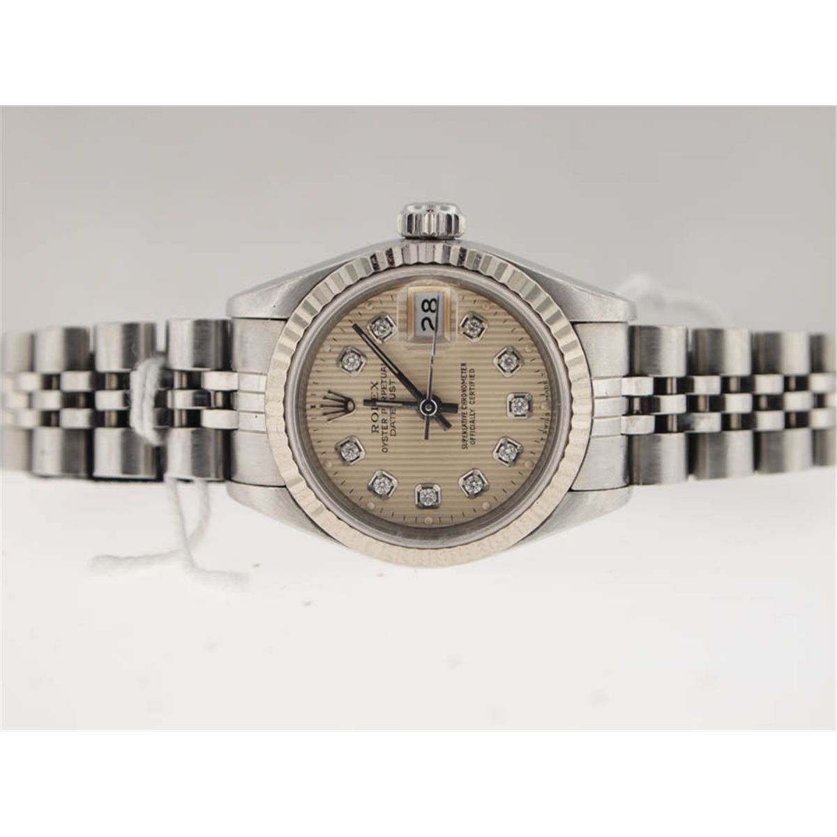 Rolex Ladies SS Datejust. Quickset. Diamond Dial. Rolex, Ladies, Stainless Steel, Oyster Perpetual, Datejust, Quickset Movement, Sapphire Crysal, Custom Aftermarket Diamond Dial, Tuxedo Dial, Automatic Movement, Jubilee Bracelet, Deployment Buckle, Swiss Made, Beautiful Condition, Pre-Owned.