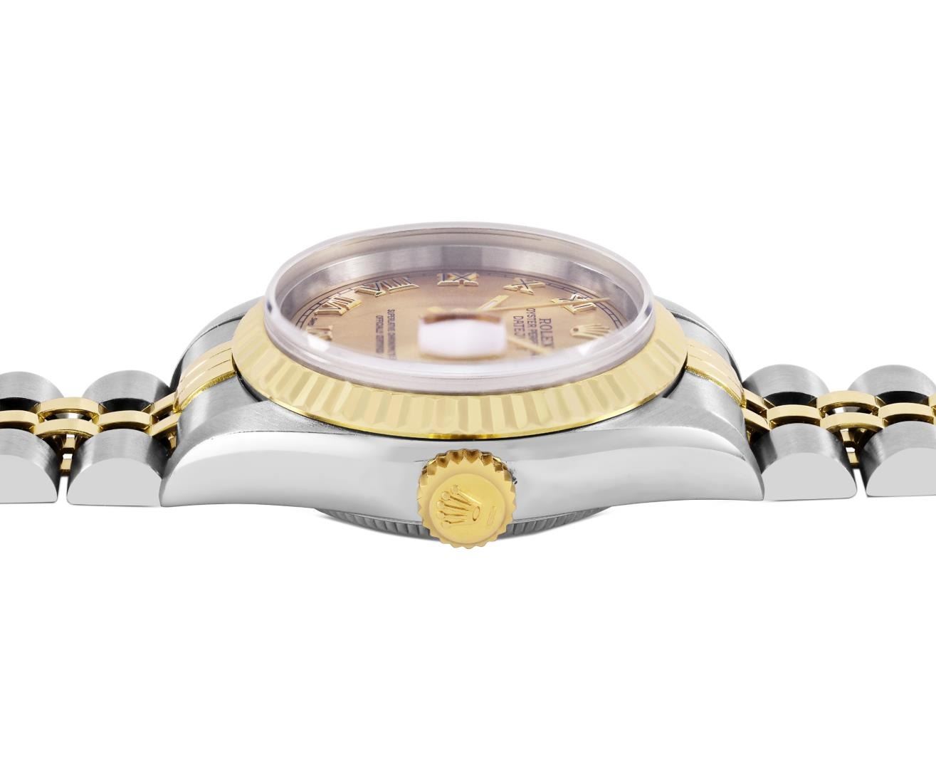 One Ladies Pre Owned Quickset 2T 18K Yellow Gold And Stainless Steel Sapphire Quickset Rolex Datejust Polished Bright with Satin Finish, Serviced And Electronically Tested, Rolex Stainless Steel Case: 26mm, Rolex 18K Yellow Gold Crown, Rolex Bezel: 18K Ye