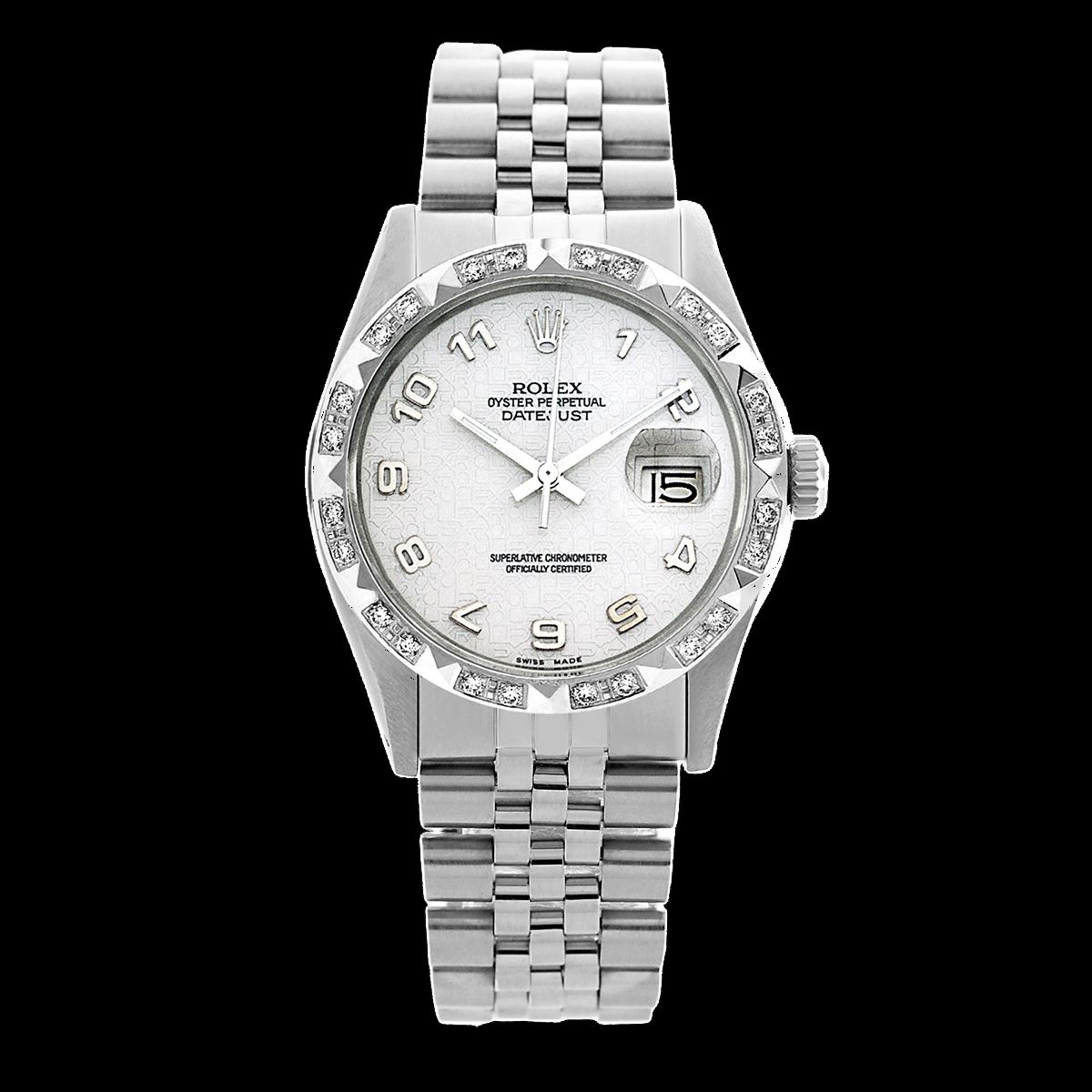 WATCH DETAILS: ITEM: WatchBRAND: RolexTYPE: Stainless SteelFEATURE: MODEL: DateJustMADE: Swiss MadeGENDER: LadiesCONDITION: Pre-OwnedFUNCTION: DateDIAL COLOR: SilverHOUR MARKERS: Arabic BEZEL TYPE: Pyrimid Custom Made Diamond Bezel BEZEL STONE: Diamond G-VVS1 BEZEL MATERIAL: 18K GoldBRACELET TYPE: Jubilee BRACELET MATERIAL: Stainless SteelCLASP TYPE: Folding ClaspCLASP MATERIAL: Stainless SteelCASE STONE: CASE SIZE: 26mmCRYSTAL: Scratch Resistance Sapphire CrystalMOVEMENT: Automatic (Self Winding)CALIBER: 2030CROWN TYPE: Screw Down CrownWATER RESISTANCE: Waterproof to 10 ATM/100 meters/330 feetMODEL #: 6917SKU #: ALSJNS33We Buy/Sell/Trade Valuable watches, Please call us