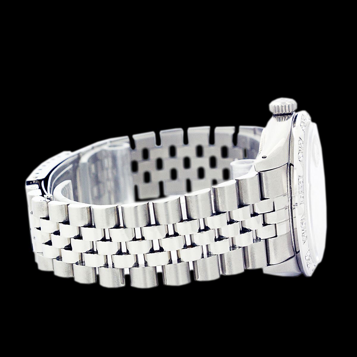 WATCH DETAILS: ITEM: WatchBRAND: RolexTYPE: Stainless SteelFEATURE: MODEL: DateJustMADE: Swiss MadeGENDER: LadiesCONDITION: Pre-OwnedFUNCTION: DateDIAL COLOR: Silver JubilieeHOUR MARKERS: Arabic 6,9BEZEL TYPE: Pyrimid Custom Made Diamond Bezel BEZEL STONE: Diamond G-VVS1 BEZEL MATERIAL: 18K GoldBRACELET TYPE: Jubilee BRACELET MATERIAL: Stainless SteelCLASP TYPE: Folding ClaspCLASP MATERIAL: Stainless SteelCASE STONE: CASE SIZE: 26mmCRYSTAL: Scratch Resistance Sapphire CrystalMOVEMENT: Automatic (Self Winding)CALIBER: 2030CROWN TYPE: Screw Down CrownWATER RESISTANCE: Waterproof to 10 ATM/100 meters/330 feetMODEL #: 6917SKU #: ALSJNS34We Buy/Sell/Trade Valuable watches, Please call us