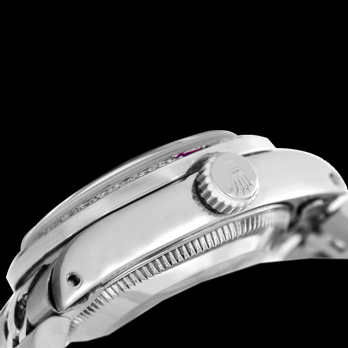 REF-355N6F ---- Rolex Ladies Stainless Steel, Diam Dial & Diam/Ruby Bezel, Saph CrystalThis watch is in Excellent Condition.